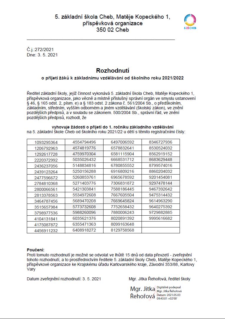 Výsledky zápisu do 1. tříd pro školní rok 2021/2022 najdete v článku.