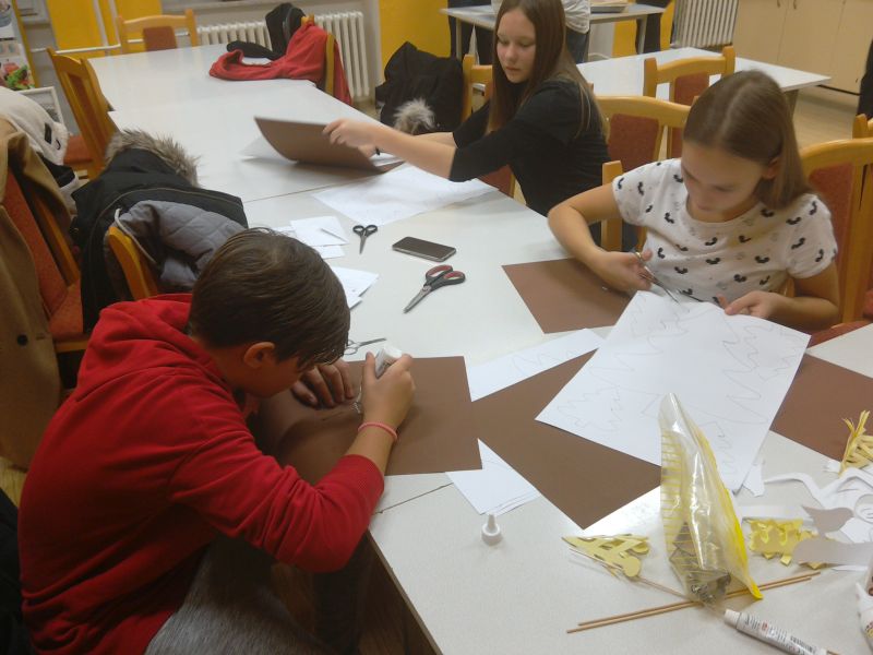 Děti se rozdělily se do skupin, rozebraly si recepty a pustily se do díla. Překážky s pečením překonávaly s nadšením, odměnou jim bylo jejich vlastní upečené voňavé cukroví. Kromě klasiky v podobě lineckého cukroví a rohlíčků si vyzkoušely i druhy jim neznámé – žabí tlamičky a skořicová srdíčka. Kdo neměl zrovna co dělat, vyráběl ozdoby na třídní vánoční stromeček. Tvořivé odpoledne bylo zakončeno přespáním ve škole. Velkou pochvalu si zaslouží nejen za chování, ale i za úklid třídy a školní kuchyňky. Třeba si to někdy zopakujeme.