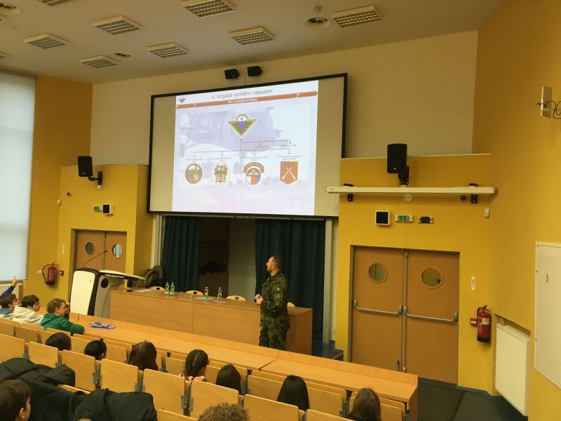 Po úvodních informacích o službě v AČR a u jednotek 4. brn, o mezinárodních operacích od počátku 90. let 20. století do současnosti, přešel přednášející k velmi poutavému vyprávění o svých osobních zážitcích zejména z vojenských misí v Afghánistánu. Beseda, do které se někteří žáci aktivně zapojili, byla doplněna prezentací s autentickými fotografiemi z výcviku českých vojáků nebo přímo z bojových akcí. Kromě mnoha zajímavostí z vojenského prostředí si snad žáci odnesli i životní zkušenost českého veterána, a to, že člověk by se měl všechno učit co nejlépe, protože nikdo nikdy neví, kdy se mu budou získané znalosti hodit. Na závěr besedy byl přednášející oceněn zaslouženým potleskem všech přítomných.