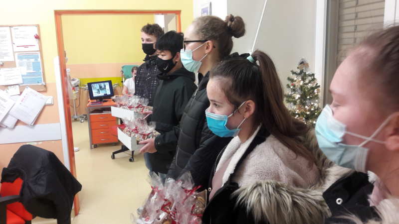 Předposlední školní prosincové odpoledne strávili někteří žáci 9.B ve školní kuchyňce, aby připravili sladké překvapení pro sestřičky a bratry z chebské nemocnice.
