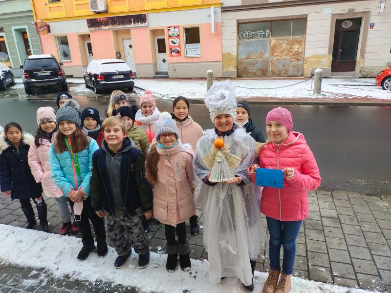 Jejich opravdové úsilí jim vyneslo 2. místo v soutěži a odměnu 650,- Kč. Děti měly možnost naložit s odměnou dle vlastního uvážení. Bez zaváhání a okamžitě se rozhodly věnovat peníze na dobročinné účely. Společně jsme se domluvili, že peníze darujeme Hospici Sv. Jiří, kam jsme je v pátek 3.12. 2021 odnesli. Dostalo se nám milého přijetí a děti byly odměněny Řádem Sv. Jiří a sladkostmi.