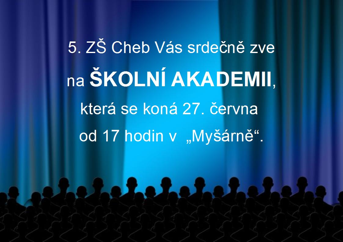 1. stupeň zahájí akademii v úterý 28.6. v 10,00 ve velké tělocvičně naší školy. Školní akademie 2. stupně a rozloučení s deváťáky proběhne v "Myšárně" v pondělí 27.6. od 17, 00 hod.