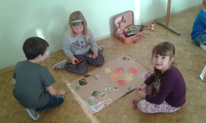 V průběhu vyučování hlavně zpívali, malovali, cvičili, ochutnávali plody podzimu, očichávali je a osahávali. Na všech úkolech děti pracovaly ve skupinách. Výsledkem naší činnosti bylo utřídění si poznatků o podzimu. Nakonec si každá skupinka vytvořila veliký podzimní plakát.