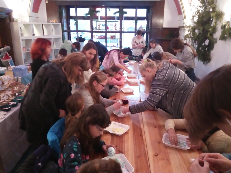Poté jsme se přesunuli do Ježíškovy dílny na chebském náměstí, kde si děti vyrobily vánoční ozdoby. Německé kamarády doprovodili žáci 9. ročníku, kteří byli dětem oporou jak při vyrábění, tak při nakupování na vánočních trzích.