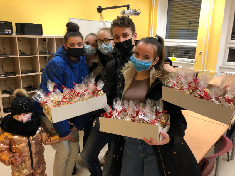 Předposlední školní prosincové odpoledne strávili někteří žáci 9.B ve školní kuchyňce, aby připravili sladké překvapení pro sestřičky a bratry z chebské nemocnice.