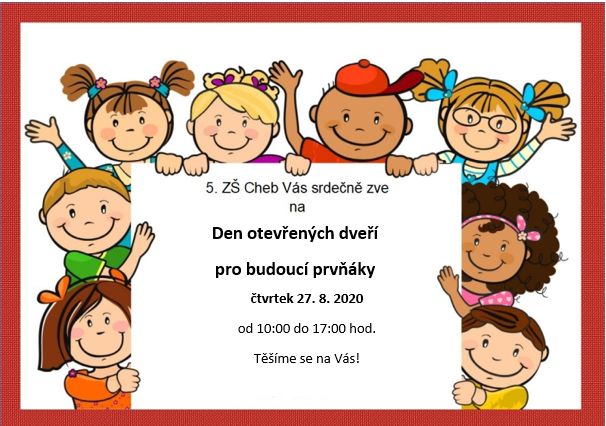Ve čtvrtek 27.8.2020 proběhne na naší škole Den otevřených dveří pro budoucí prvňáky. Vzhledem k tomu, že v době koronakrize nemohl proběhnout zápis do 1. tříd tradiční formou, rozhodli jsme se umožnit novým žákům a jejich rodičům seznámit se s prostředím naší školy ještě před nástupem do školy. Všichni budoucí prvňáci a jejich rodiče jsou vítáni!