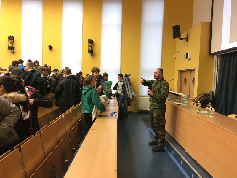 Dne 7. 1. 2020 se žáci IX. A zúčastnili besedy se současným veteránem Armády České republiky, účastníkem několika zahraničních vojenských misí, nadrotmistrem Bc. Martinem Kulhánkem z Operačního oddělení 4. brigády rychlého nasazení AČR, která proběhla v aule chebského gymnázia.
