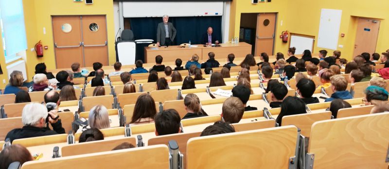 Téměř 20 deváťáků se 7. října v aule Gymnázia Cheb zúčastnilo besedy s generálem ve výslužbě ing. Petrem Pavlem M.A., kterou uspořádalo Město Cheb a moderoval ji pan místostarosta Jiří Černý.
