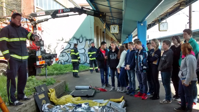 Dne 29.04.2015 se žáci VIII.A zúčastnili společného projektu Českých drah, Správy železniční dopravní cesty, Drážní inspekce, BESIPu Ministerstva dopravy, Policie ČR a ČD Cargo, jehož cílem je seznamovat veřejnost, zejména z řad žáků a studentů základních a středních škol, s hlavními riziky nesprávného chování na železnici. Speciální vlaková souprava na chebském nádraží tentokrát nepřepravovala žádné cestující ani náklad, ale přivezla informace, které mohou zachránit zdraví i život. Žáci nejprve zhlédli filmy s bezpečnostní tematikou v prvním vagónu, který slouží jako speciální kinovůz. Poté následovala přednáška zkušených drážních hasičů s praktickými ukázkami, do kterých se ochotně zapojili někteří žáci. V dalším konferenčním voze proběhla přednáška odborníků, drážního inspektora a policisty, kteří se nehodami na železnici zabývají. Poslání tohoto projektu, tedy varovat děti i dospělé před nebezpečím na železnici, bylo jistě naplněno.