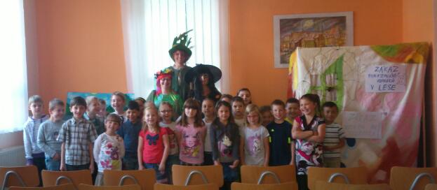 V úterý 3. června se děti z 1.B vydaly do dětského oddělení Městské knihovny v Chebu. Hned na schodech je přivítal hejkal a uvedl je do lesa.